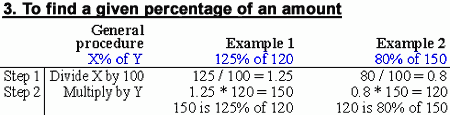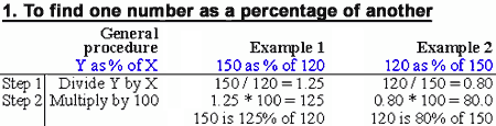 This is a matter of simple arithmetic. Basic rules for calculating percentage changes are given below. The various operations in the examples are similar. They are designed to minimise the number of key strokes required when using a calculator. Multiplying or dividing by 100 and adding or subtracting 1 can be done by eye.